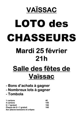 L’ACCA de VAISSAC organise son loto annuel avec de très nombreux lots !